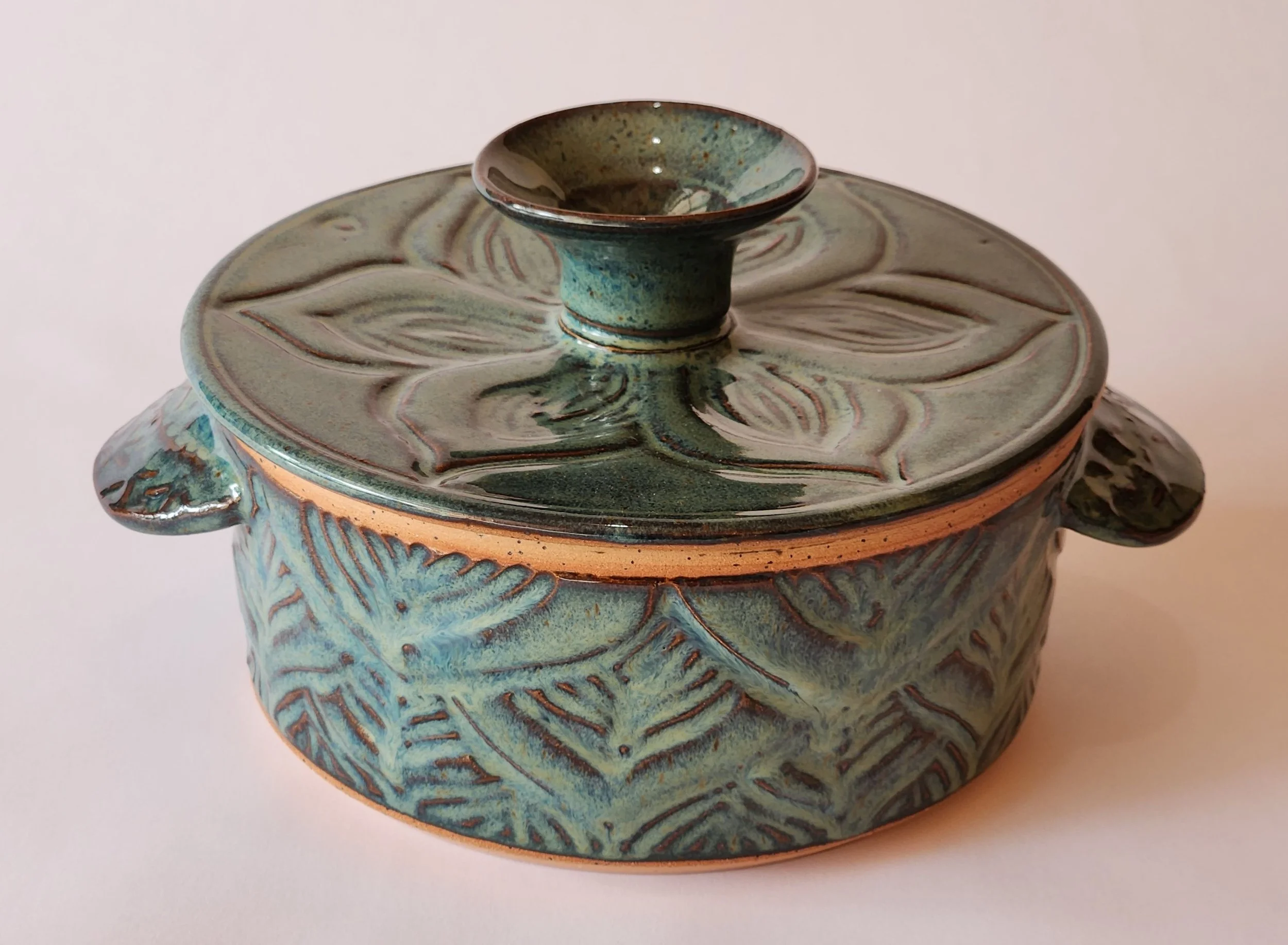 Kim creates expressive and functional pottery by skillfully shaping and refining ordinary clay through the dynamic process of wheel throwing and hand building. Each piece carry a unique touch of craftsmanship. There is more of this artisan’s work on this website. Click here to see it.