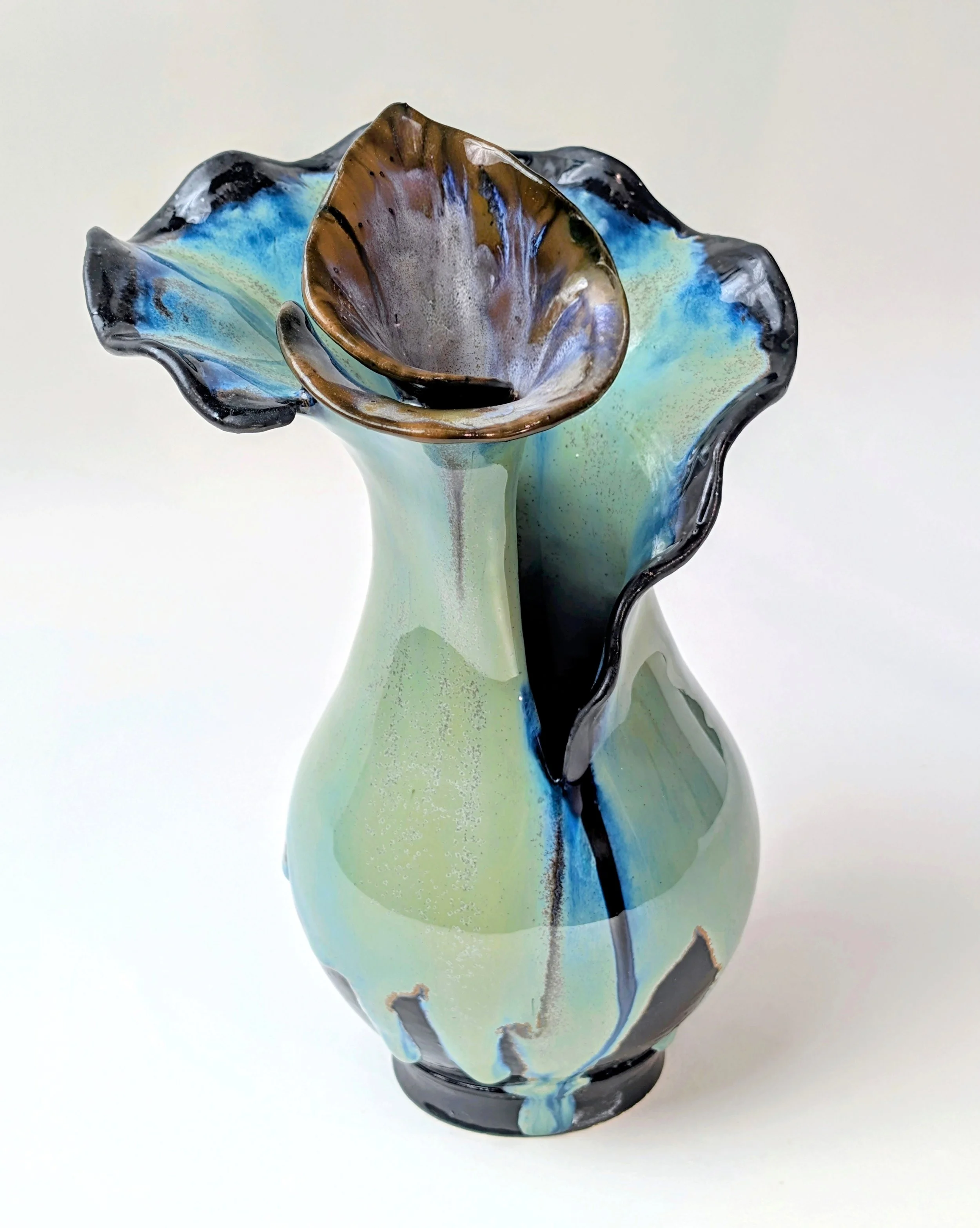 "My ceramic work is divided between utilitarian pottery and glorified vessels. My functional, utilitarian pottery is elegantly or whimsically designed to perform with ease and delight making using it a special and pleasurable experience. My glorified vessels are based upon functional vessels that abandon utilitarian concerns for a more sculptural approach. The pieces are glazed with multiple layers of glazes that are medium to high-fired in a reduction or oxidation atmosphere.