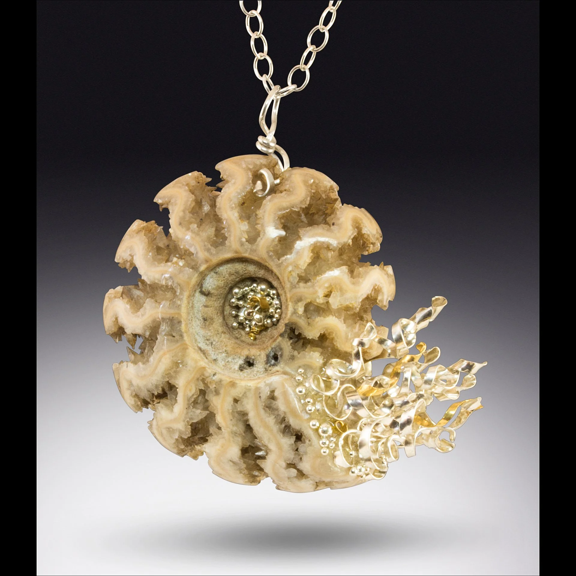 Denise is a self-taught artist who specializes in natural gemstones, South Sea and Tahitian pearls, and fossils set in Sterling, Fine Silver and 18K Gold. It really all starts with the stone. The stones she likes to work with have something special and unique about them; an unusual shape, exceptional color or a rough gem that just needs a little care and attention. Using traditional lapidary practices, she brings these stones and fossils from rough to jewelry ready. Most stones and fossils are acquired directly from the people who mine them and most pearls come directly from the pearl farm owners. There is more of this artisan's work on this web site. Click here to see it.